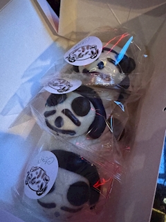 ゆらです 昨日の退勤後にラーメン食べたからめっちゃ顔浮腫んでる😔3日連続で麺食べてる気が…💭 パンダ“さん”来る予定なかったって言いながらちゃっかり食べ物持ってきてくれるあたりゆらのことよく分かってる🙂↕️どこか行く度にお土産買ってきてくれてありがと( ˙༥˙ )🍴いつも大感謝です🐼 今回は推しの出店のおすそ分けらしいです 今日も🤝🏻